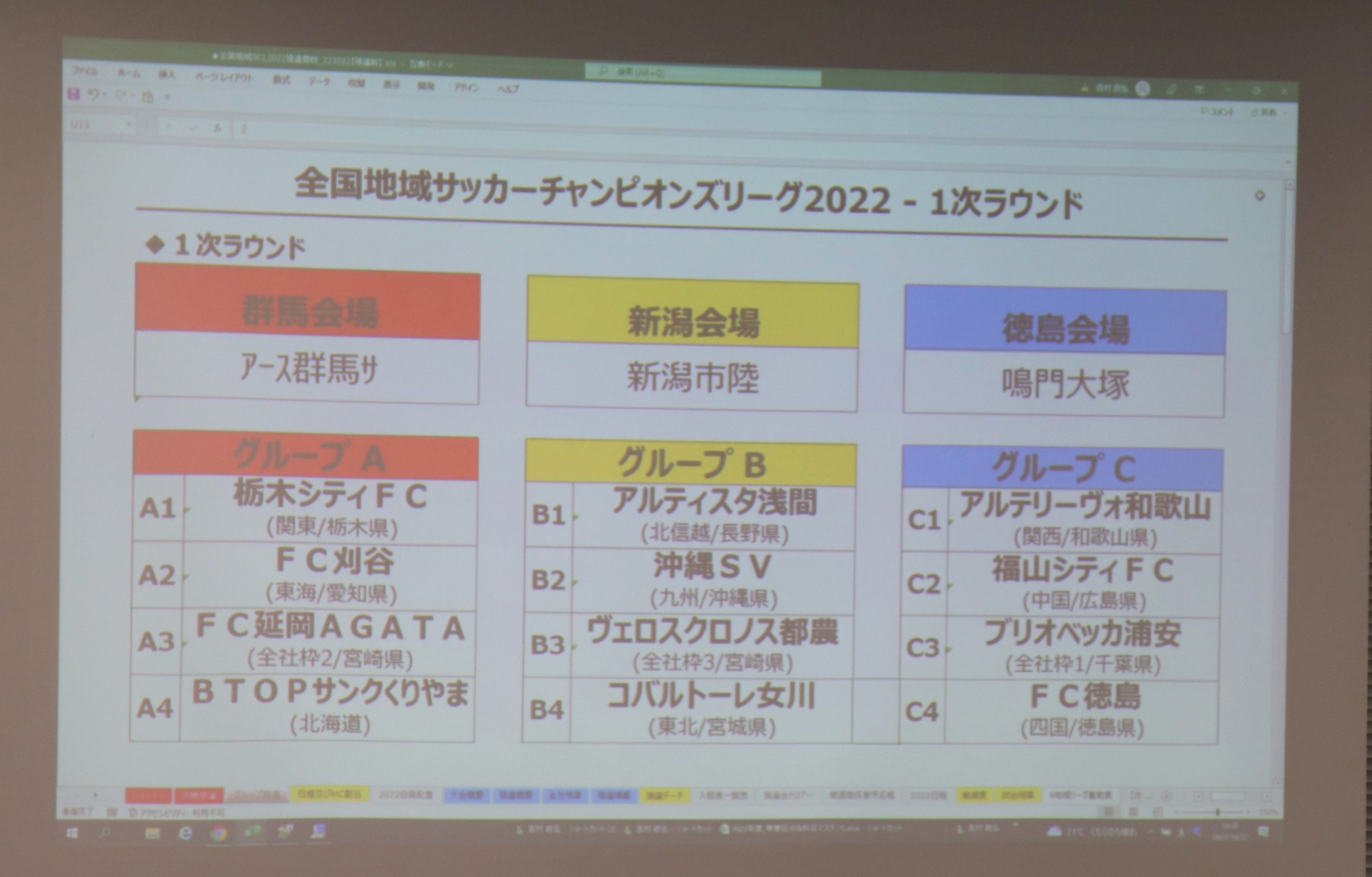 本日行われた『全国地域サッカーチャンピオンズリーグ2022』1次ラウンド組み合わせ抽選会の結果、