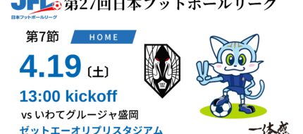 【TOP】4/19(土) 第27回 JFL第7節 いわてグルージャ盛岡 戦 について