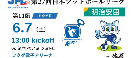 【TOP】6/7(土) 第27回 JFL 第11節 ミネベアミツミFC戦 <Supported by 明治安田> について -2025.5.27現在-
