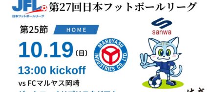 【TOP】10/19(日) 第27回 JFL第25節 FCマルヤス岡崎 戦 について<Supported by 株式会社三和製作所>