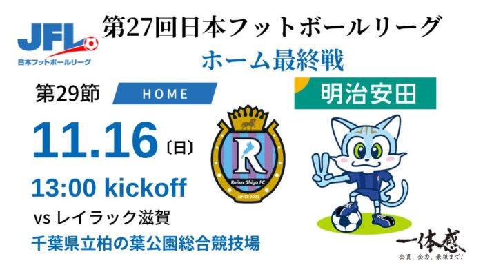 第27回日本フットボールリーグ 第29節(ホームゲーム最終戦) ご案内