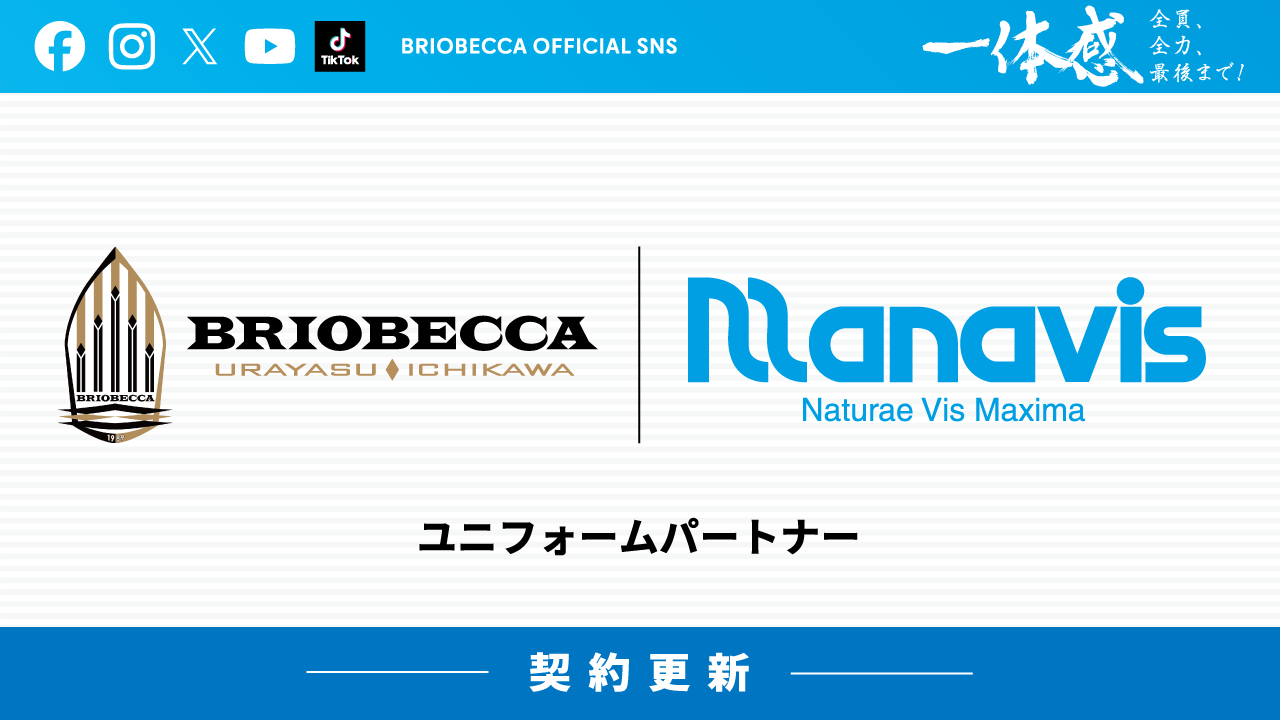 ブリオベッカ浦安・市川はこの度、株式会社マナビス(千葉県浦安市)とのユニフォームパートナー契約を更新しましたのでお知らせいたします。