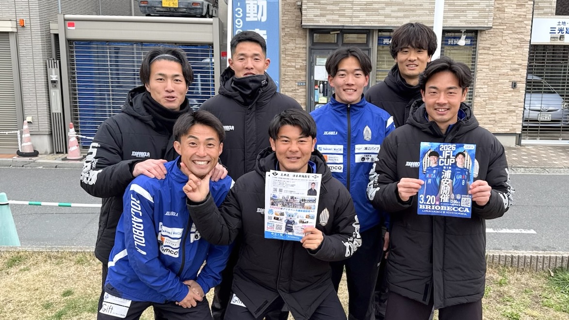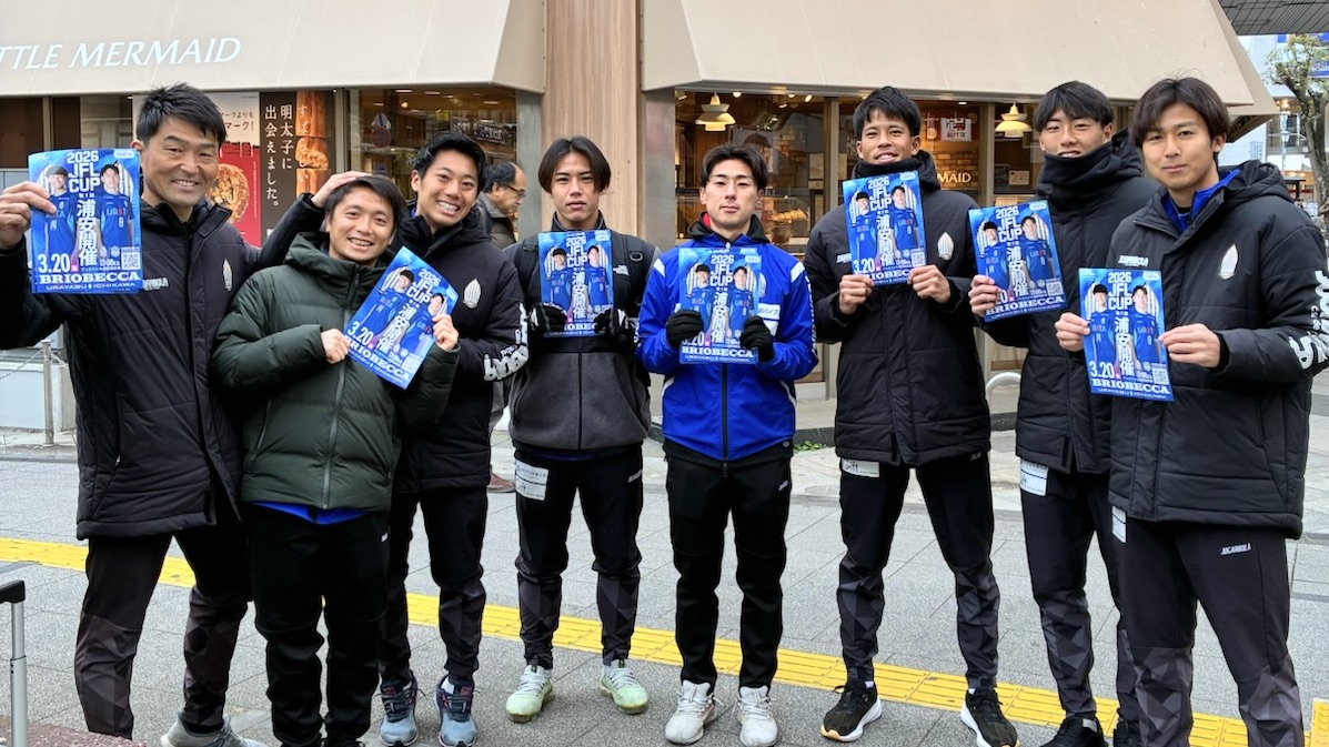 3月20日の2026JFL CUP開幕戦へ残り1週間。通勤・通学の途中にチラシを受け取っていただいた皆さま、誠にありがとうございました。