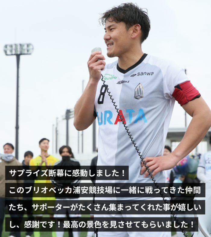 3月20日に行われました上松瑛&富塚隼 引退試合では、ゴール裏にサポーター有志の方々から、2人へのメッセージが掲げられました。